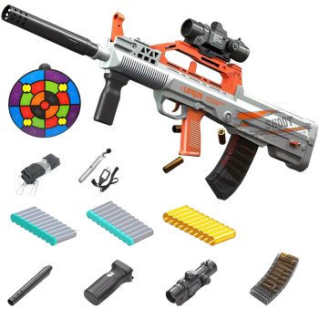 スポンジ銃 電動+手動のデュアルモード アサルトライフル M249 弾丸銃 おもちゃ 排莢式 自動回復ターゲット 男の子 誕生日 人気 プレゼント ギフト